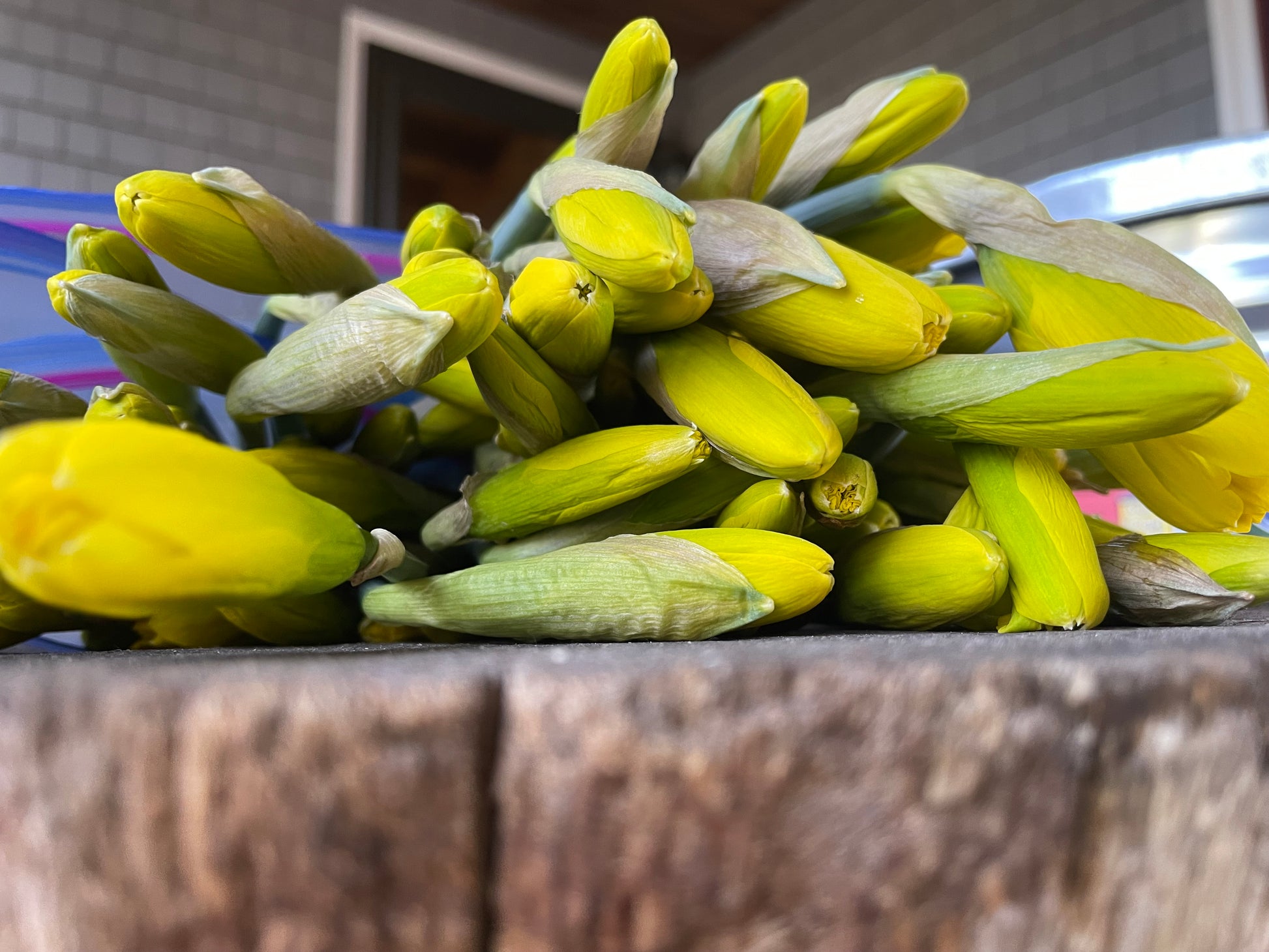 Delightful Yellow Daffodils with yellow centers that are sure to bring a smile to one's face. They are a happy sign of spring! We pick and ship them when they are in a closed state in order for them to bloom longer for you! Please place them in water when received and enjoy! You can pre order and pick up your daffodil bunches at the farm or you can have them shipped!