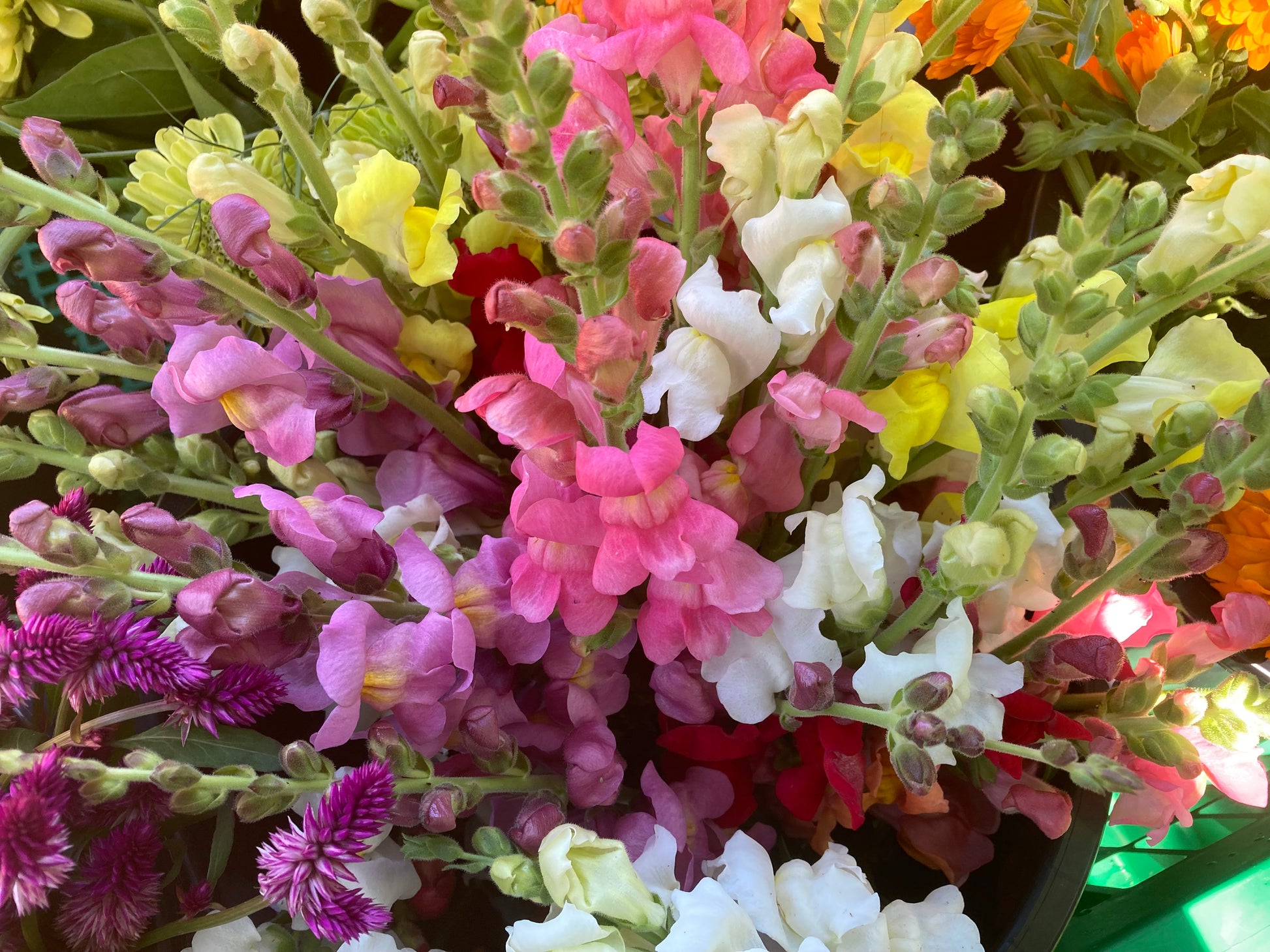 Beautiful mixed, fragrant, snapdragon cut flower stems. Colors vary per mix but can include the following: apple blossom bicolor, cherry rose, royal, yellow, white, red, orange, lavender, and pink. Not only are they great in bouquets and arrangements, but they can also be used as a colorful garnish.